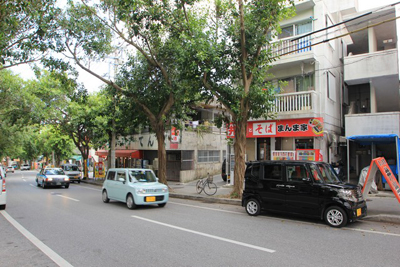 国道330号線から首里へ伸びる道路。街路樹が美しい