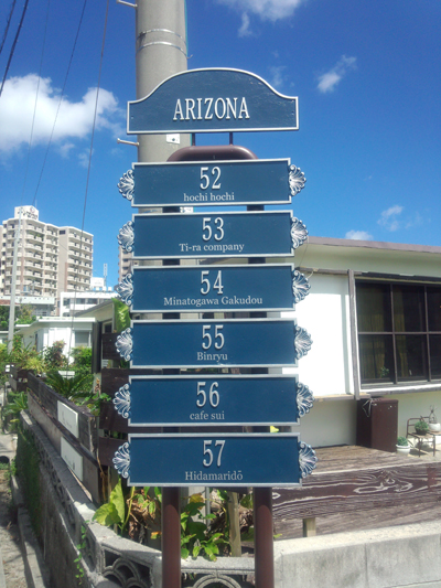 浦添市港川にある外人住宅群にあるカフェが立ち並ぶ。それぞれの通りにアメリカの州が名付けられている。