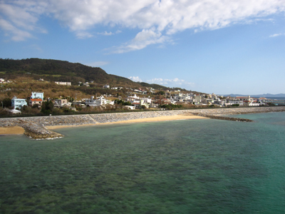 瀬底大橋より健堅地区を展望