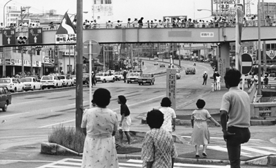 1978年、7月30日。交通法変更を見守る市民たち(泊交差点)