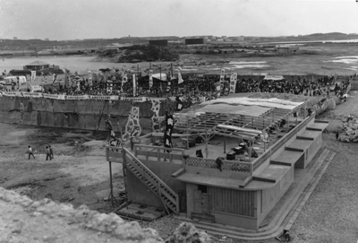 大相撲沖縄場所。波之上埋立地に大相撲の朝潮太郎が来沖し、巡業を行った。