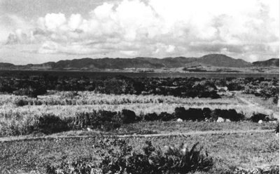 小城盛からオモト岳を望む農耕地(2)