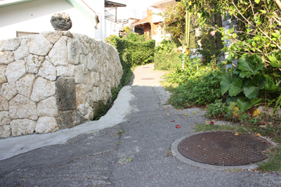 壺屋通りの中のすーじ道途中にある石敢當
