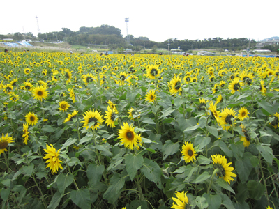 地域の人たちが協力して一面にひまわりを植えて、風物詩になっている