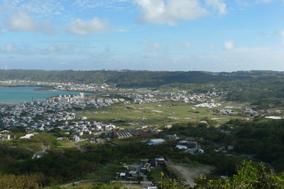 大里城跡内展望台より南城市佐敷津波古・新里区を望む