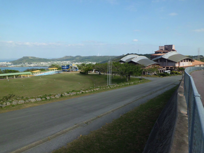 ゆんいちホテル裏のゲートボール場から知念方面を望む