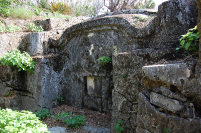海辺の岩壁を掘込むようにして、いくつかの亀甲墓がある。