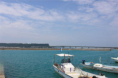 漁港から浜比嘉大橋を望む事ができます