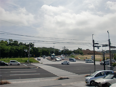 国道58号線と国体道路の三叉路