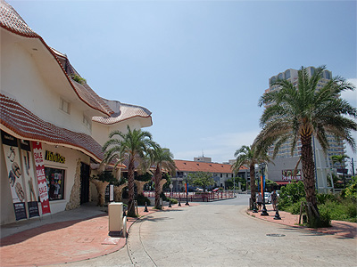 美浜アメリカンビレッジの南西側店舗群とリゾートホテル