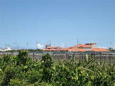 青々とした緑の向こう側に赤瓦の屋根。美しいコントラスト。