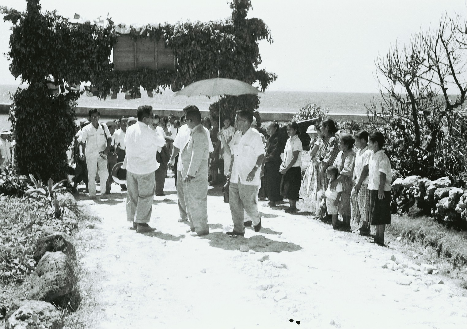大田政作行政主席視察 粟国村 歓迎の門をくぐる主席