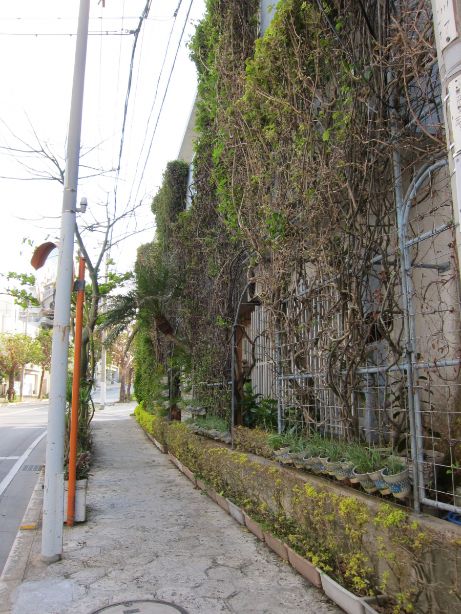 県道沿いの壁面緑化