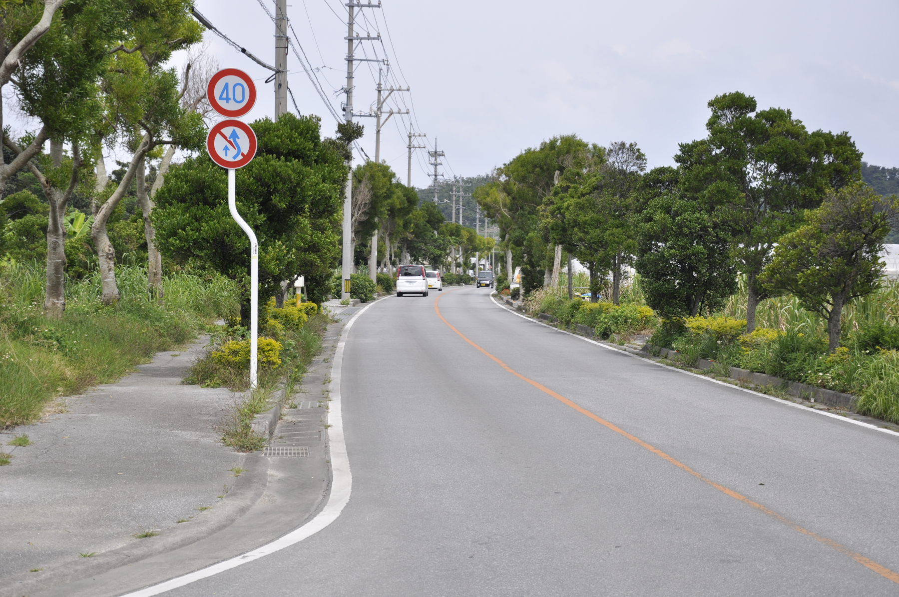 高良集落近くの県道15線 緑豊かな街路樹がつづく