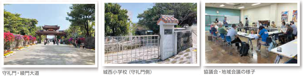 ●学校区地域の「首里金城地区(平成6年重点地区指定)」、「龍潭通り沿線地区(平成14年重点地区指定)」では城下の歴史的景観まちづくりが進展しており、今後の景観重点地区の拡充を見据えて協議会を窓口に那覇市と地域との調整が進められています。