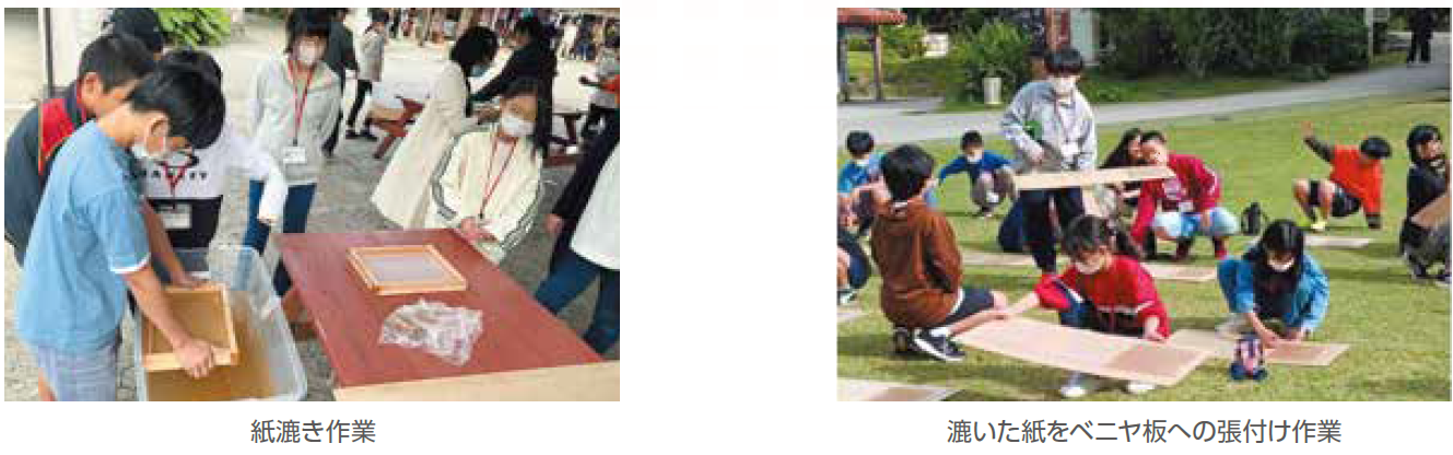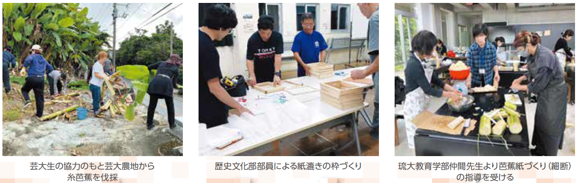 ●歴史文化部会では、児童の首里伝統文化と風景への愛着育成に向けて「芭蕉紙づくり(卒業証書作成)」活動支援に取り組んでいます。